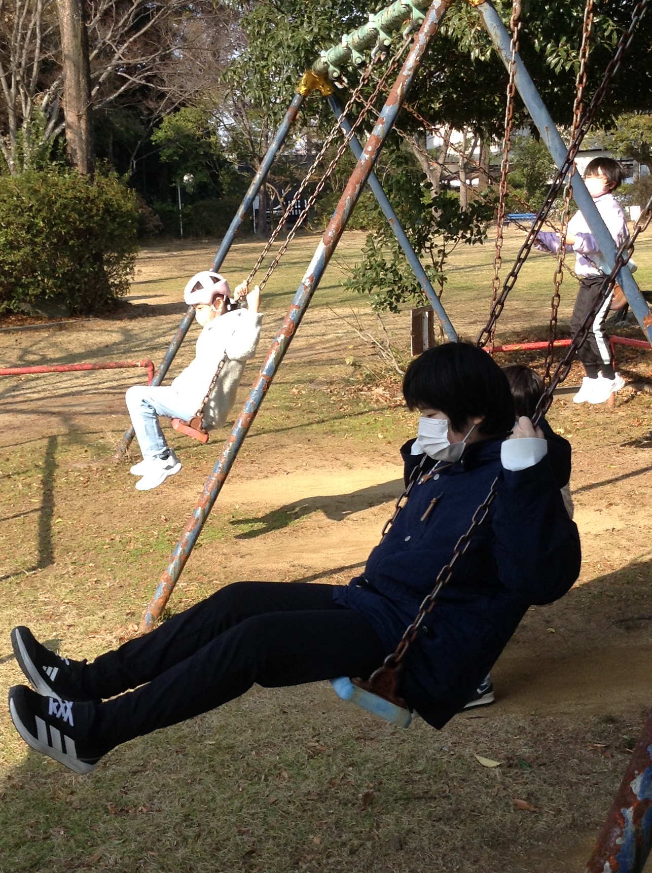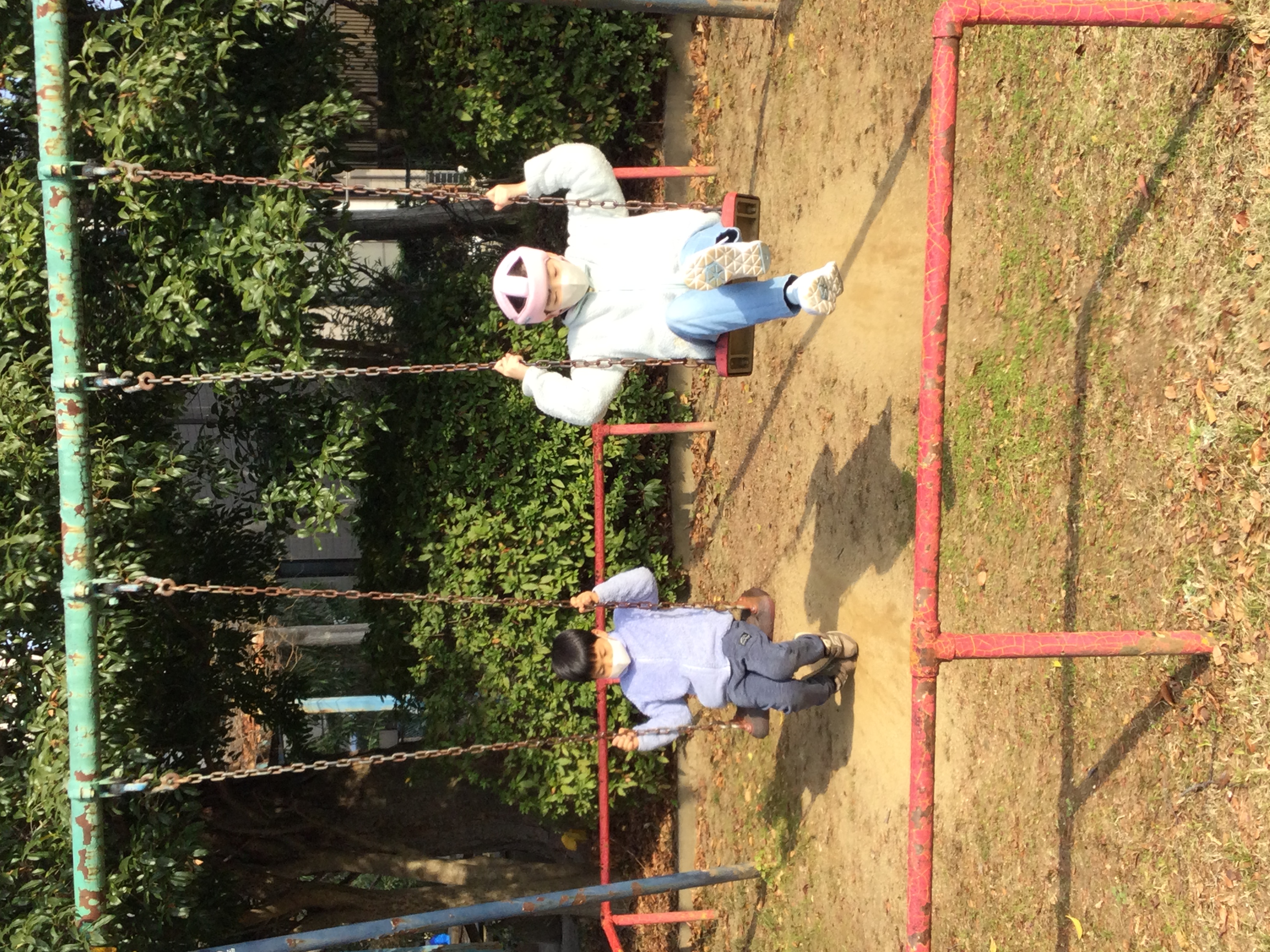 近くの公園のブランコが、ずっと使用禁止だったので、みんな久しぶりにブランコで遊べるのがとても楽しそうでした。
