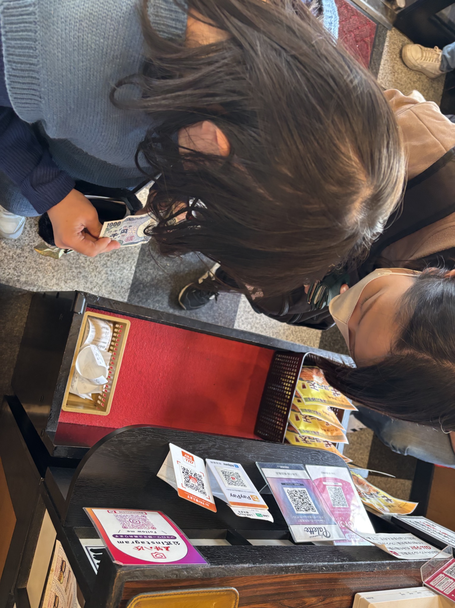 会計は子どもたちが1人ずつ店員さんに何を食べたかを伝え支払いをしています。