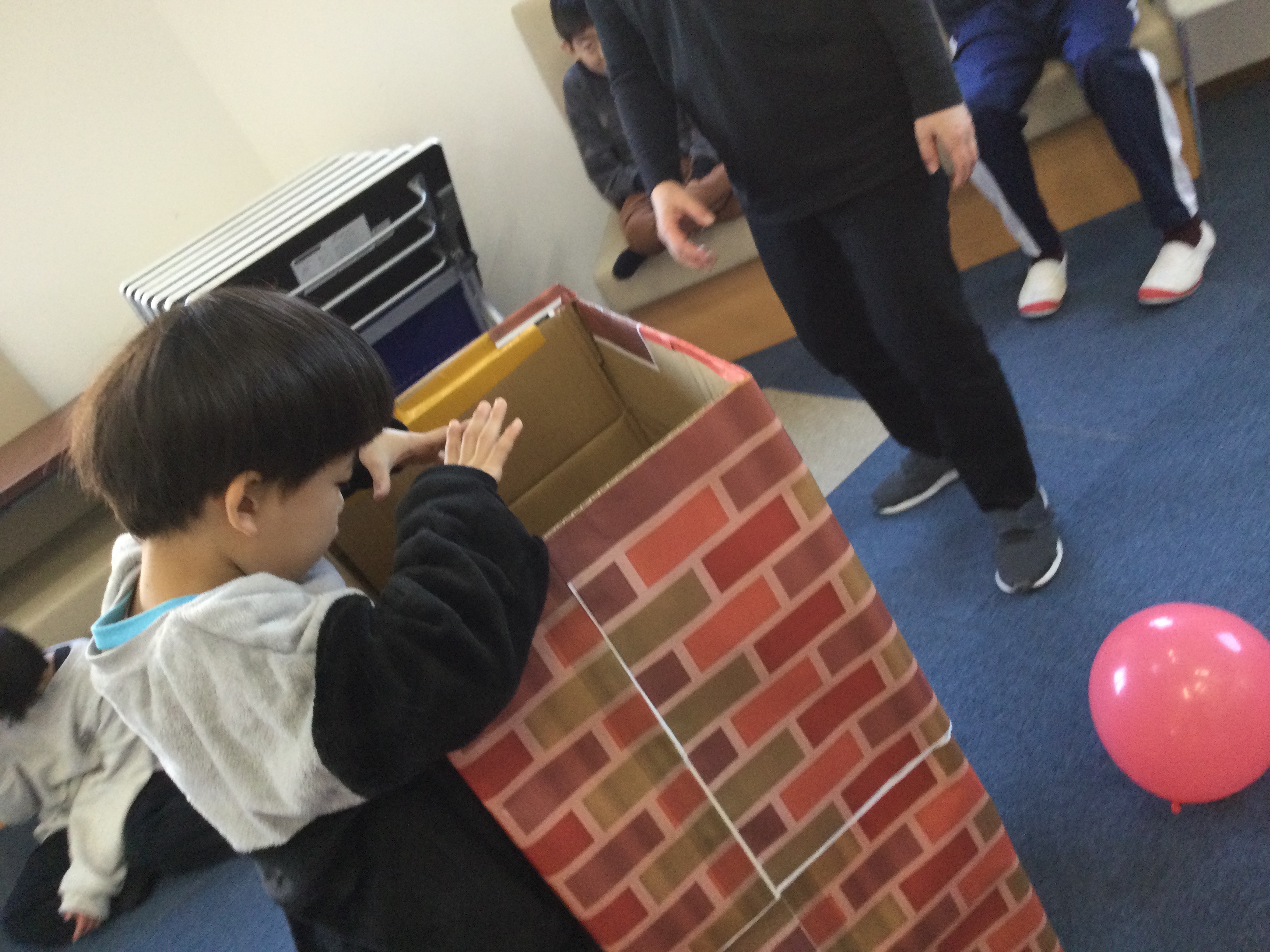 「あわてんぼうのサンタクロース」の歌に合わせて太鼓やタンバリンを叩きます。